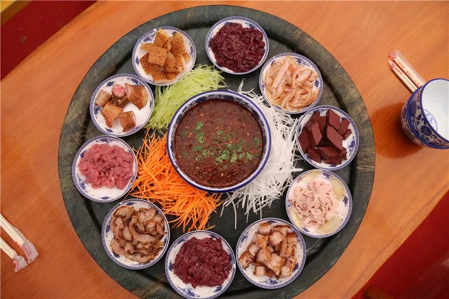 生皮,未加工過的豬皮和豬肉保持著原始的味道,加上一份香、酸、辣的蘸水,色香味俱全,滿足!