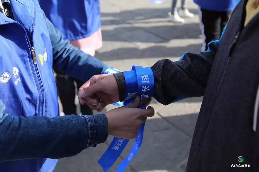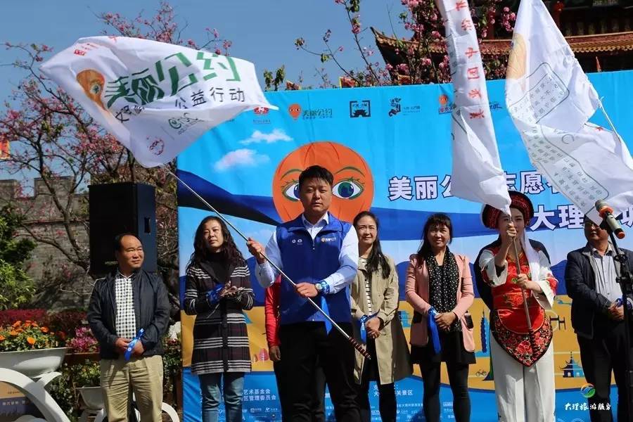 大理旅游集散中心(集團(tuán))有限公司旗下的大理古城旅游服務(wù)有限公司副總經(jīng)理趙偉從公益組織手中接過了“美麗公約,文明旅游,公益行動”的旗幟,開啟了公司文明旅游志愿者活動。