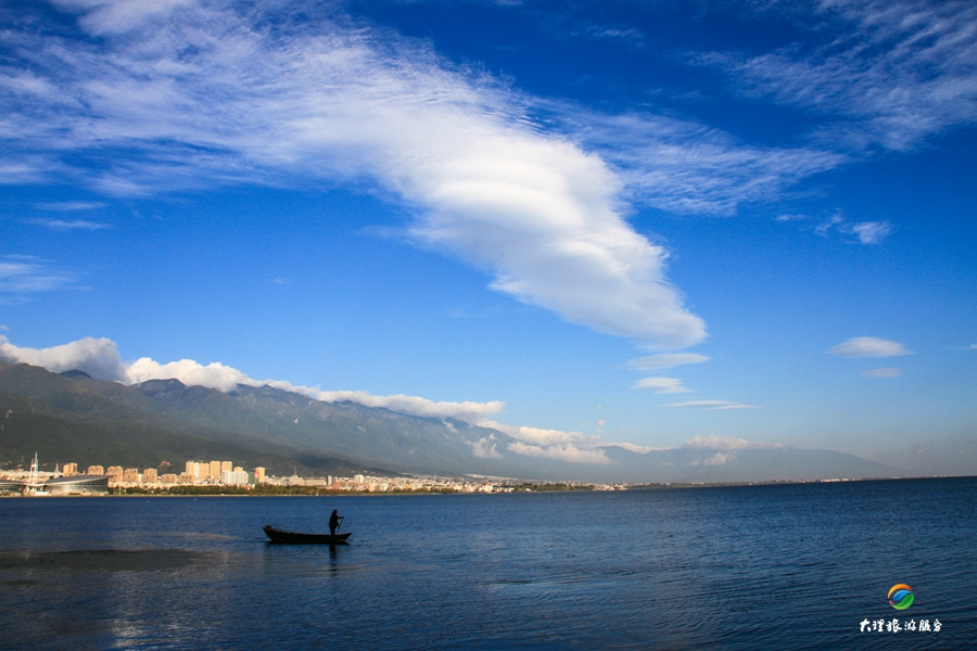 天空分外藍(lán),白云像輕紗一樣在藍(lán)天飄蕩。