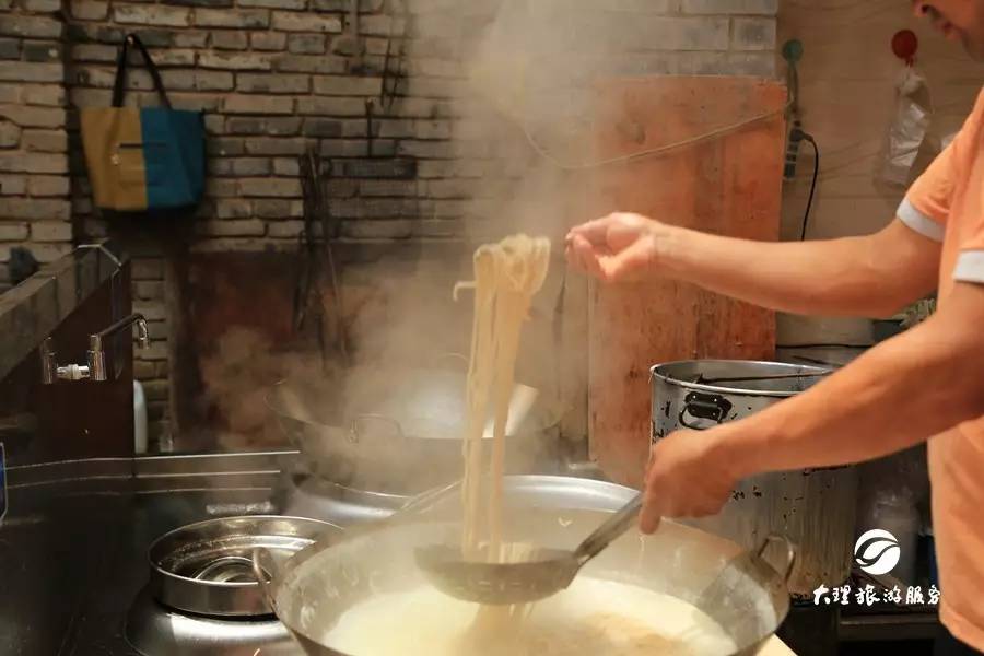 從這一套套的餌絲來(lái)看,巍山人對(duì)“吃”是真的很講究。餌絲從清湯碗里一點(diǎn)一點(diǎn)分到帶佐料的扒肉湯里,扒肉吃在嘴里,肥而不膩,細(xì)膩回甜,餌絲質(zhì)地細(xì)膩,柔軟糯香。