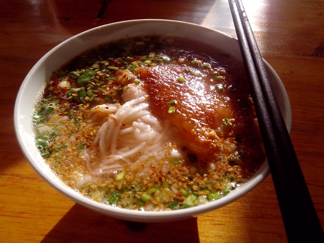 巍山卷粉好吃的秘訣,與油辣子分不開(kāi)。菜籽油要純正,油溫要適中,不然潑不出來(lái)那么香的辣椒油。
