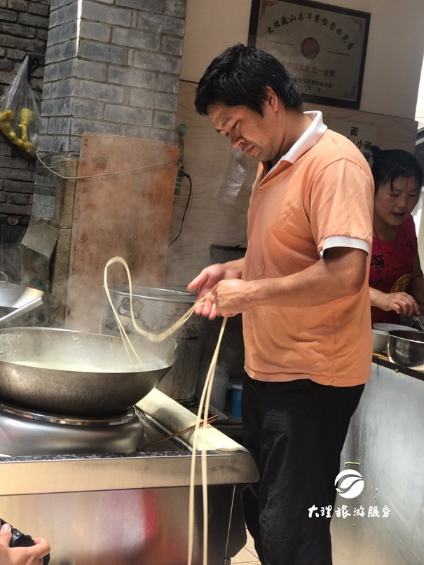 許記涼皮,已經(jīng)做了兩輩人。通過(guò)傳統(tǒng)的卷粉,他們家改良出了一個(gè)新品種——涼皮。卷粉一般是用米制作而成,而涼皮卻是用小麥面來(lái)做,它的工序比制作卷粉還要復(fù)雜。涼皮看起來(lái)晶瑩剔透,口感更Q彈,有韌性。這口涼皮是在別家吃不到的哦,尋遍巍山,僅此一家!