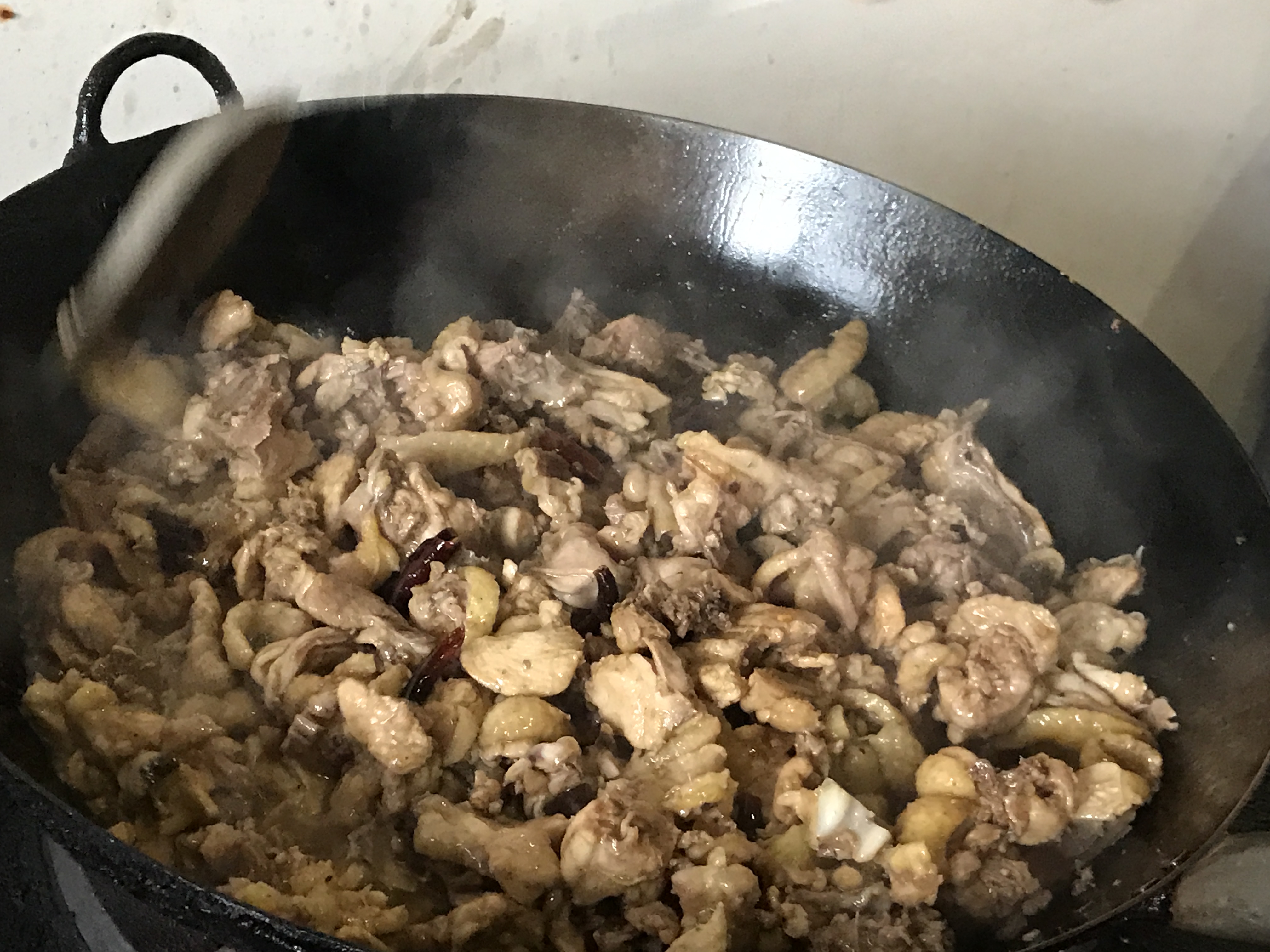 三道菜,吃的就是原生態(tài)。雞是自家放養(yǎng)的土雞,食草及綠色谷物、野果長(zhǎng)大。全天都在果園和山里覓食,肉質(zhì)也比較鮮美緊實(shí)。