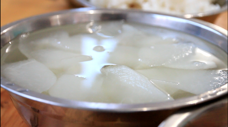 蘿卜為東山蘿卜,皮薄水多,清甜爽口。清水蘿卜,除了蘿卜要新鮮,煮蘿卜的水也是有講究的,必須要金華山里流出來(lái)的竹根水,才算最佳。